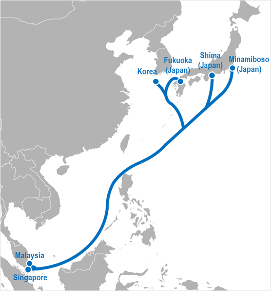 | Planned Landing Points: | Japan (Chiba, Mie, Fukuoka), Malaysia, Singapore, and South Korea Note: Fukuoka is planned as an international telecommunications hub in western Japan, in coordination with newly developed data center clusters. |