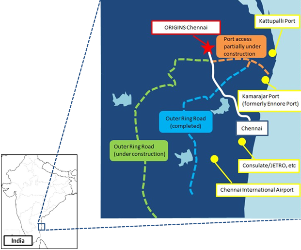 Sumitomo Corporation has heretofore developed, operated and sold its own industrial parks in Indonesia, the Philippines, Vietnam and Myanmar. Utilizing the know-how it has cultivated in the process, ORIGINS Chennai will comprehensively develop on-site construction and infrastructure (roads, water supply, sewage, etc.). In addition, Sumitomo Corporation will support the speedy expansion of companies into the India by creating an environment in which the companies can concentrate on production, including full support by Japanese staff.