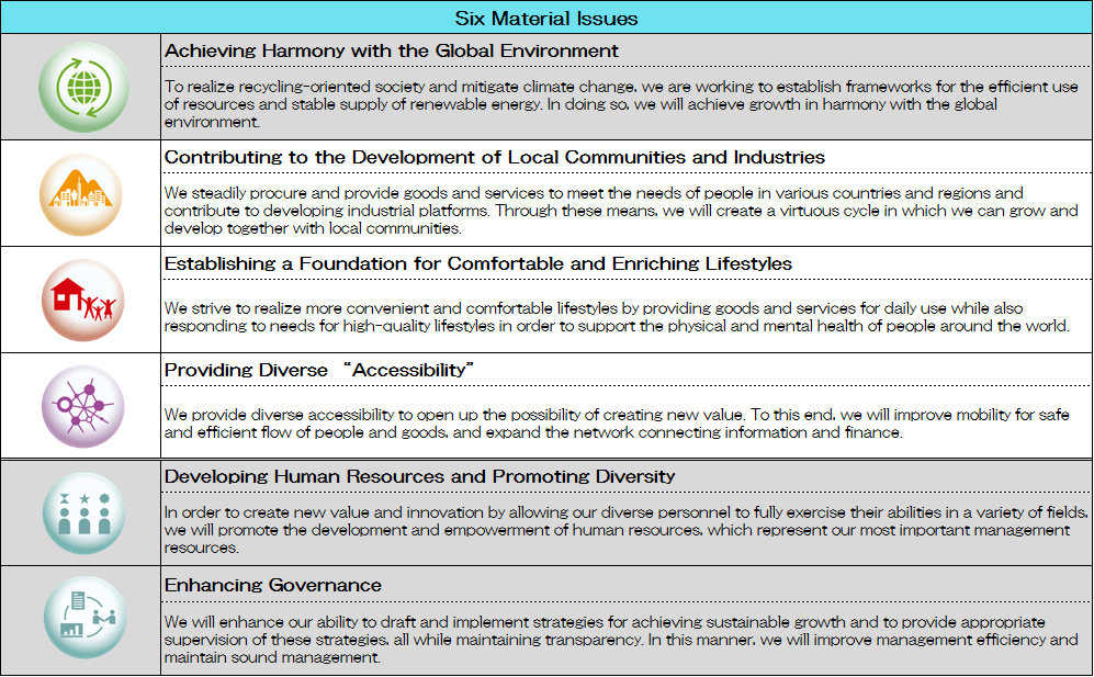 Sumitomo Corporation Group positions “Six Material Issues to Achieve Sustainable Growth with Society” as an important factor in developing business strategies and in the decision-making process for individual businesses. Going forward, we will pursue sustainable growth by resolving these issues through our business activities. This project especially contributes to “Contributing to the Development of Local Communities and Industries” .