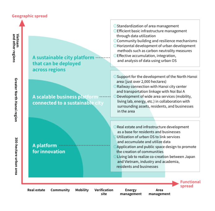KawamuraThe total cost of the project is approximately 400 billion yen, of which the first two phases will account for approximately 100 billion yen, making this an extremely large-scale urban development project for Sumitomo Corporation. Our strength lies in our ability to promote comprehensive urban development through cross-departmental collaboration in diverse fields such as infrastructure, real estate, energy, mobility, digital, lifestyle, and retail under the leadership of the North Hanoi Project Dept., Overseas Real Estate Business Dept., and Sumitomo Corporation Vietnam.