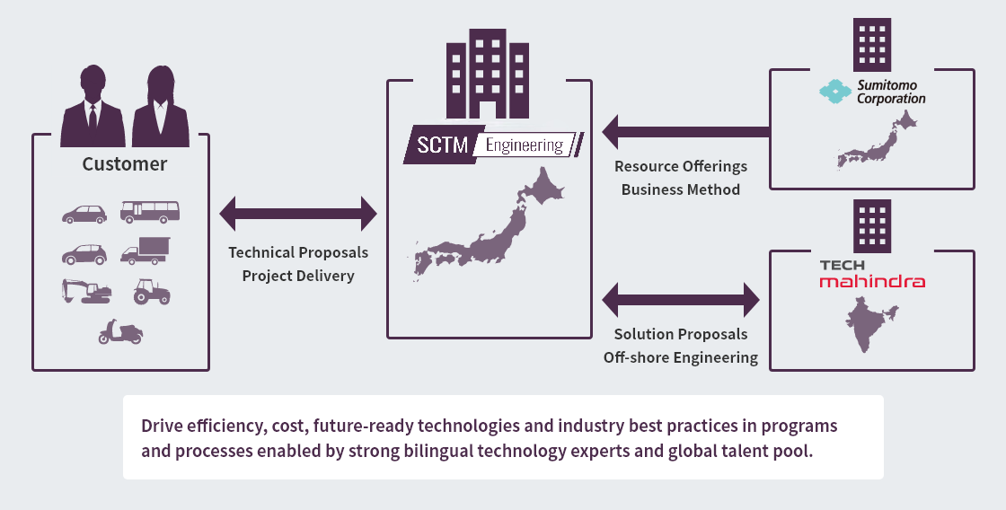 Tech Mahindra employs approximately 6,000 automotive engineers. SCTM Engineering's "bridge engineers" are utilizing these engineering resources in India to serve as a bridge to Japanese companies.