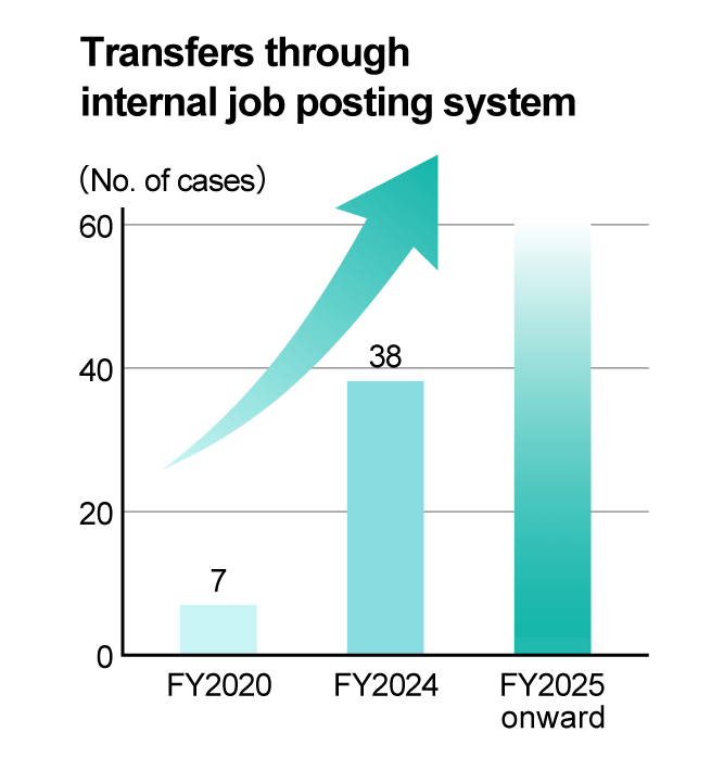 Under the current medium-term management plan, having made significant progress in the growth stage, we seek to "Empowerment of People and Organizations" as a key part of our quest to become “No.1 in Each Field.” As a concrete measure, since the start of FY2025, we have expanded our internal job posting system, which was previously held once a year, to allow departments to post openings at any time, and application requirements for employees are relaxed. This allows individuals to pursue careers aligned with their aspirations even in competitive environments. It also enables our organization to attract internal talent with the required skills and capabilities, leading to organizational reinforcement and growth. As awareness of career self-direction continues to grow, the system is expected to be used even more often moving forward.