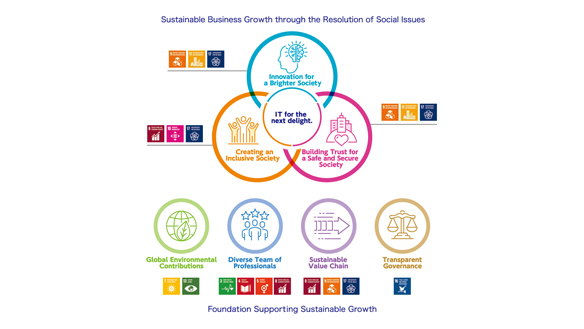 Pursuing sustainable business growth by resolving social issues to become Co-Creative IT Company by 2030