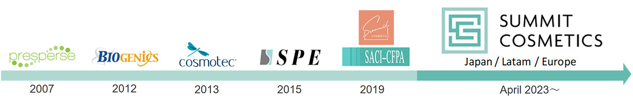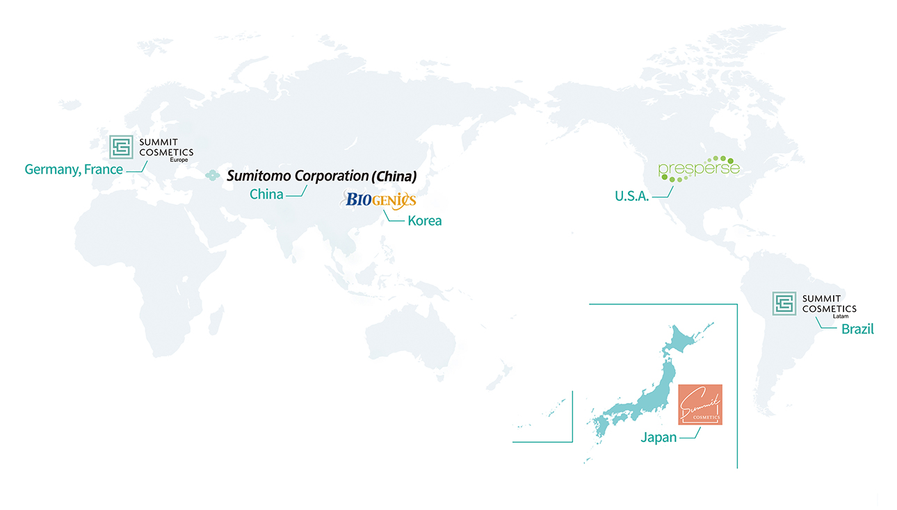 Since taking part in an investment in Presperse of the United States in 2007, Sumitomo Corporation Group has been expanding its cosmetics materials sales business globally. We have invested in Biogenics in Korea, Summit Cosmetics Latin America Especialidades Cosmeticas (company name changed in January 2024, formerly Cosmotec), and Summit Cosmetics Europe (hereinafter “SCE”, company name changed in April 2023, formerly SACI), in France, and have conducted business acquisitions in Germany. In 2019, Summit Cosmetics was established as a wholly owned subsidiary in a company split with Summit Pharmaceuticals International Corporation. To enable ourselves to respond quickly to changing market needs, we reorganized the structure of all our cosmetics materials sales companies and set Summit Cosmetics as the global headquarters. We will contribute to the evolution of the global supply chain by quickly providing and making proposals on a global scale using the kind of comprehensive, highly accurate information and m0061rket perspectives that has previously only been available locally.