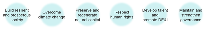 The Sumitomo Corporation Group will contribute to carbon neutralization of countries and industries through collaboration with various partners, while integrally addressing social issues, such as the impact on natural capital including biodiversity, and respect for human rights of stakeholders related to its supply chain.