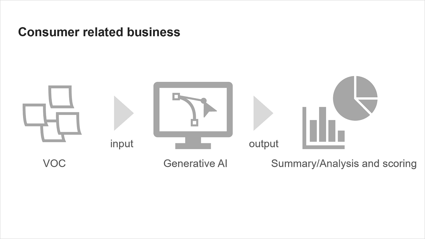 - For the consumer-related business, our plan is to develop tool models that can summarize, analyze, and quantify voice of customer (VOC) reports received by the customer support center. This aims to provide deeper insights for increasing customer satisfaction.