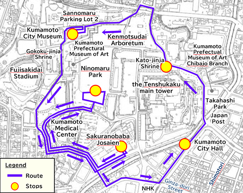Starting on February 10, 2025 (*1) , free autonomous bus services will operate along selected routes of the "Shiromegurin" bus service, which loops around Kumamoto Station and Kumamoto Castle. Initially, the bus will operate at Level 2 (*2) of autonomous driving, with six round trips planned daily between 10:00 AM and 4:00 PM. From FY2026 onwards, the goal is to implement Level 4 (*3) autonomous driving, establish connections with nearby stations and bus routes, coordinate with the airport area and create partnerships with other modes of transportation including taxis.