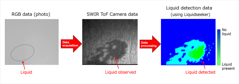 The System consists of the SWIR ToF Camera System for Water and Chemical Leak Detection developed by Sumitomo Corporation and the "Liquidseeker" leak-detection algorithm developed by Toshiba Information Systems.