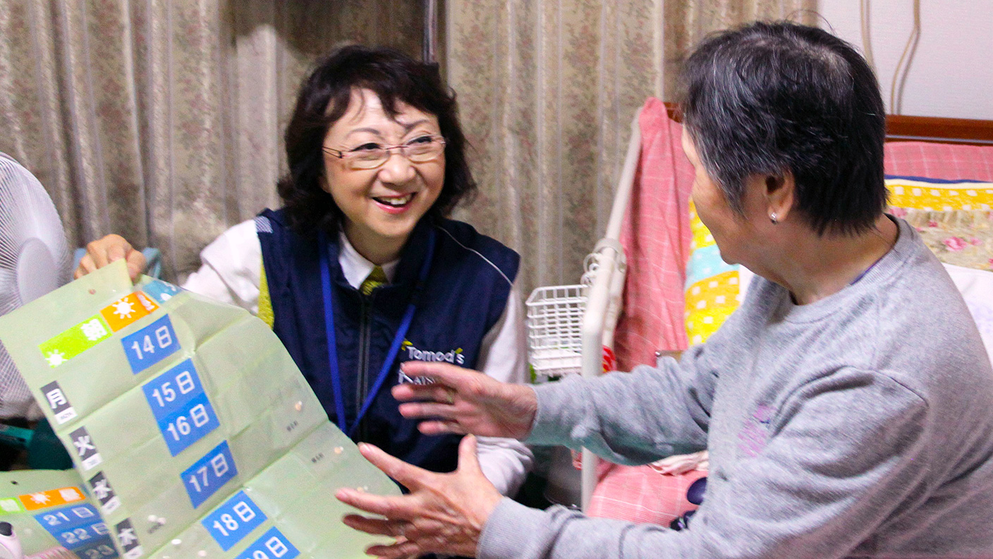 One of Tomod's approaches to community healthcare is its "home dispensing service" that started in 2017. For this service, Tomod's staff visit the homes of elderly or bedridden patients to provide medication and guidance. Currently, about 60% of stores with dispensing function offer home dispensing service. Due to a large number of requests from its customers, Tomod's is planning to expand the number of stores offering this service.