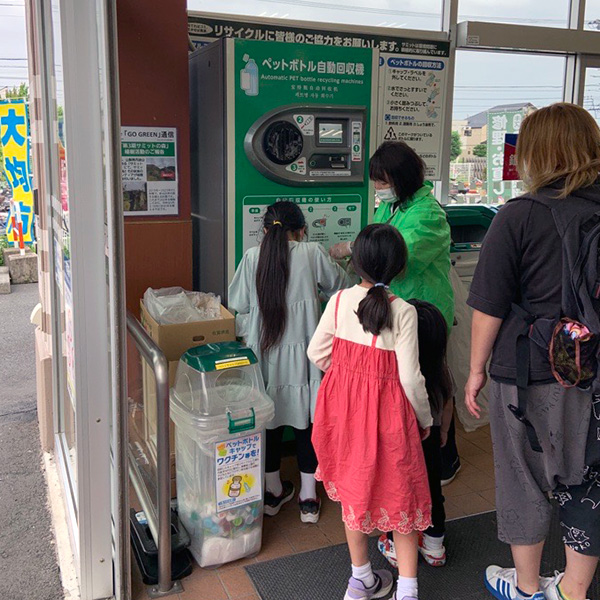 At the store, the task of putting a used plastic bottle into a reverse vending machine is very popular among children. Tomra Japan is also collaborating in family bus tours from a store to a recycling facility, organized by Fuchu City, Tokyo. It is also engaged in other activities that help raise society’s awareness of recycling.