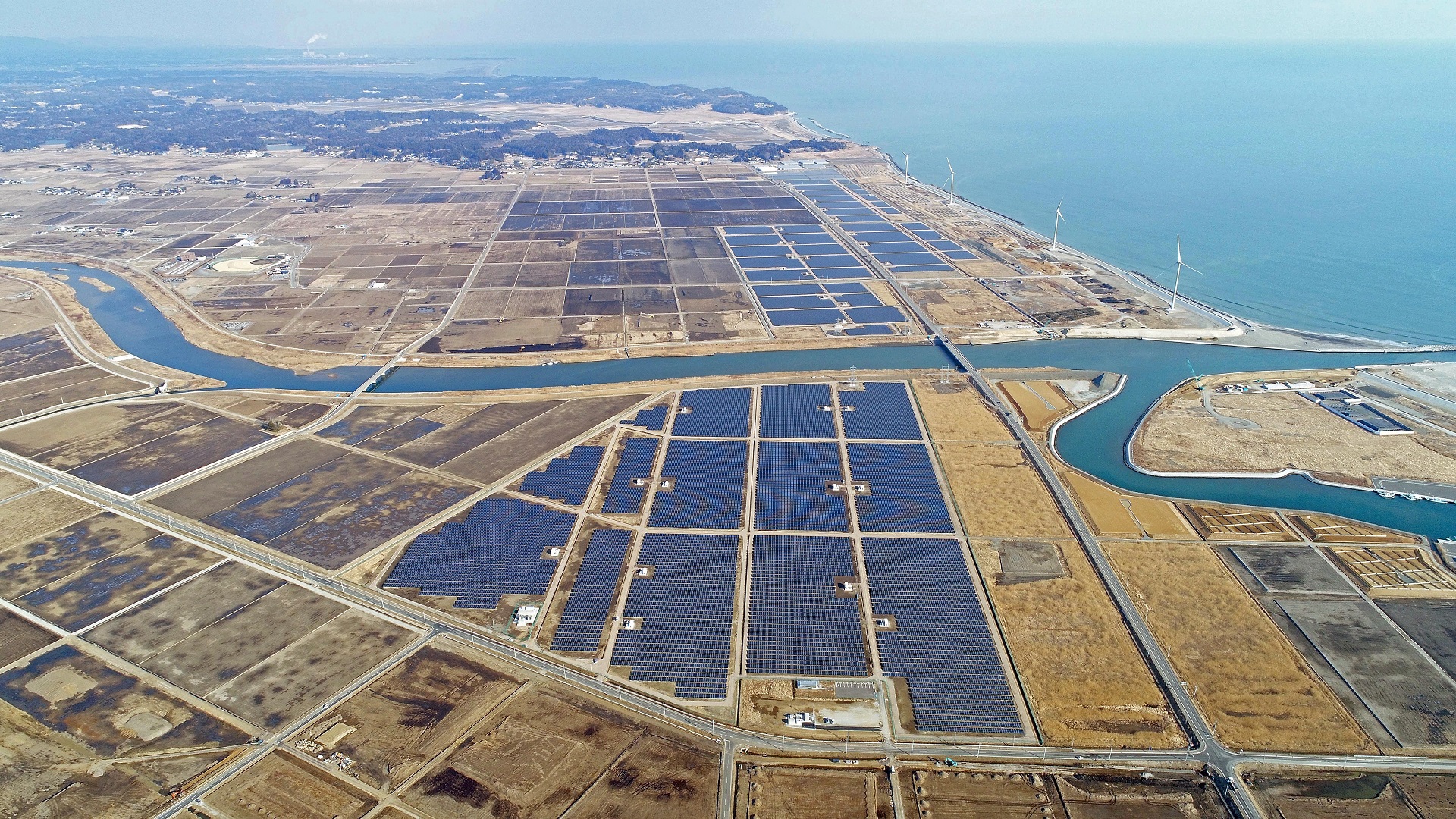 A solar power plant symbolizing the post-disaster reconstruction of Minamisoma City, Fukushima prefecture