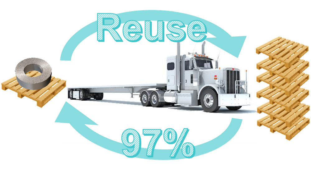 A longstanding pallet return program further contributes to waste reduction efforts. Through this initiative, wooden pallets used in shipments are collected, repaired, and reused for future deliveries, extending the life cycle of materials and lowering the need for new lumber purchases. (see below)
