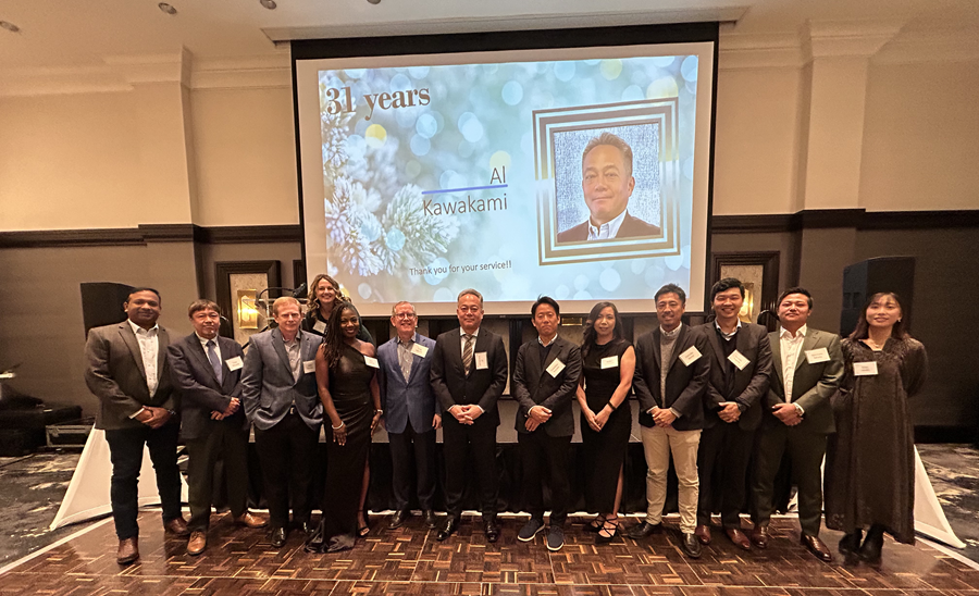 Some New York Office service award winners with SCOA President & CEO and GM for the Americas Kotaro Tameda (far left)
