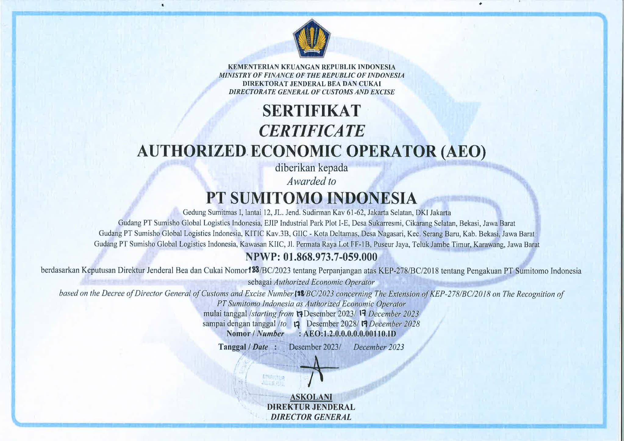 Didirikan pada tahun 1999 dan berkantor pusat di Jakarta, PT Sumitomo Indonesia adalah perwakilan dari Sumitomo Corporation di Indonesia. Sebagai perusahaan perdagangan terpercaya dan profesional, yang biasa disebut sebagai “Sogo Shosha”, kami unggul dalam mengelola mitra dan klien dengan dedikasi dan keunggulan tertinggi. PT Sumitomo Indonesia mengelola berbagai macam bisnis dan beberapa grup perusahaan.