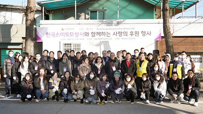 韓国住友商事が東大門区と関わりを持ち始めたのは、2019年のことです。東大門区の清涼里洞(チョンニャンニドン)地区は低所得世帯の多い地域で、社員が年1回、インスタントラーメンやキムチを貧困家庭に届ける支援活動を続けてきました。取り組みを通じて築いてきた行政や社会福祉団体との信頼関係をベースに、100SEED活動の一環として教育分野に特化した支援である「読書コーチング」プログラムへの支援が2023年から始まりました。