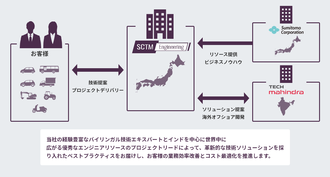 そうした中、テック・マヒンドラは約6,000人もの自動車エンジニアを抱えています。そのインドにいるエンジニアのリソースを活用し、日系企業との架け橋となるのが、SCTMエンジニアリングの「ブリッジエンジニア」です。