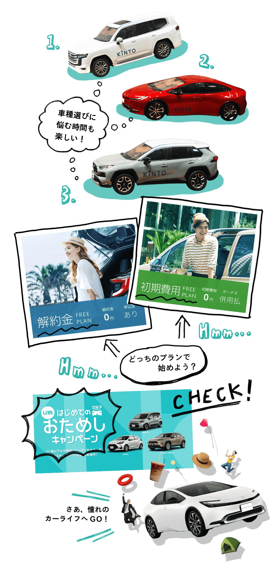 そのひとつの取り組みで、「もっと気軽にクルマのある生活を試してみたい」との声を受けてスタートしたのが、「【U35】はじめてのクルマおためしキャンペーン」です。初期費用ゼロでKINTOを始められ、解約したくなった場合は6ヶ月目に限り、解約手数料を不要としました。