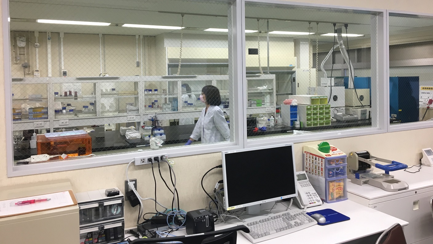 原薬分析センターは実験室と機器室の2つのエリアに分かれている。実験室にはビーカーやフラスコ、薬剤の入った瓶が並び、機器室には物質の結晶の形や純度を計測する機械や電子顕微鏡などが設置されている。判定を行う原薬はGMP基準に従って試験され、品質に問題ないことを確認されるが、原薬の安全性は服用者の命に関わる。「万が一」がないよう徹底することは、医薬品事業に携わる企業としての責任なのだと感じた。