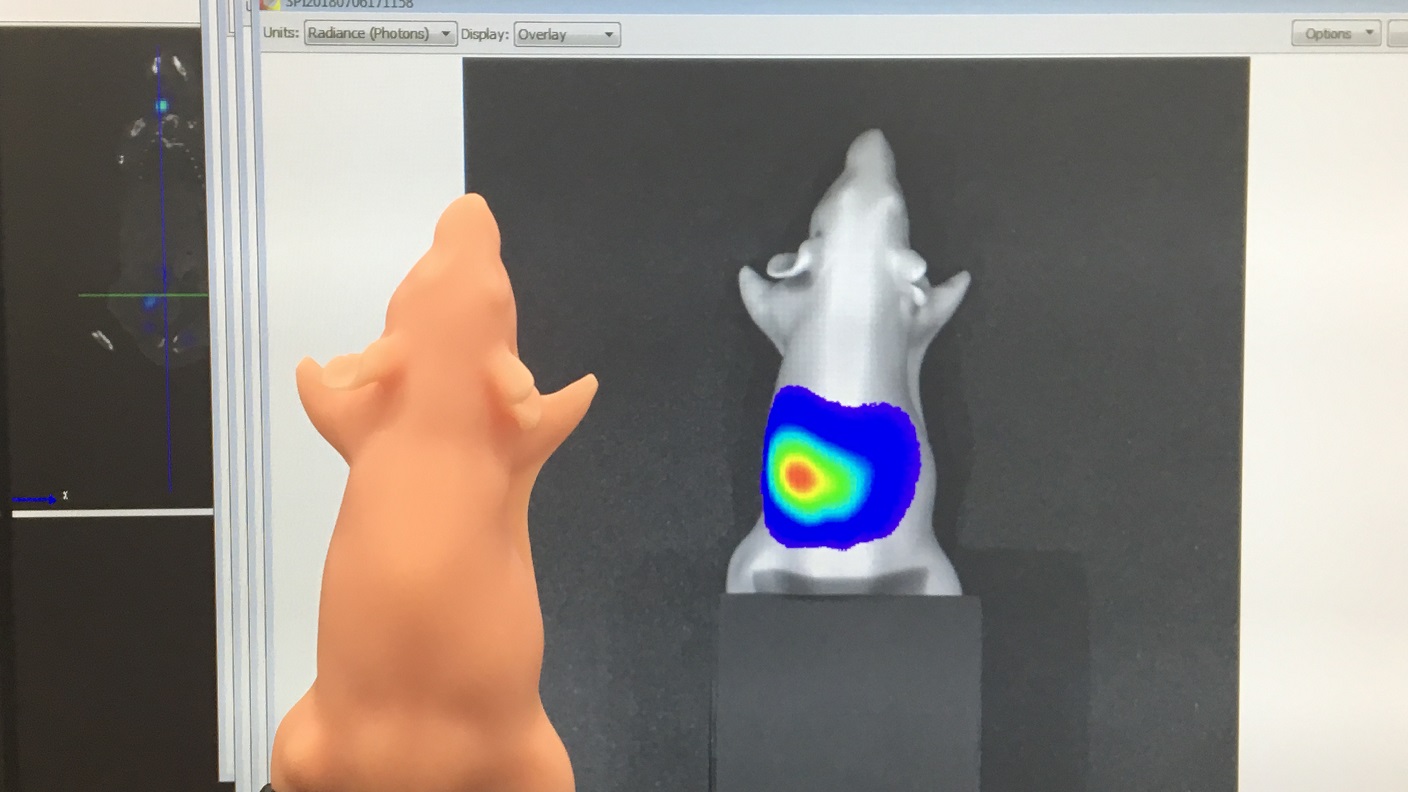 IVISは、肉眼では見えない微弱な発光や蛍光を超高感度カメラで捉え、光の量を定量化して画像として表示する機械である。動物の細胞にホタル由来のタンパク質などを導入し、体内での増殖の経過などをモニタリングする。主にがん研究や再生医療研究の現場で使用されており、SPIはIVIS光イメージング装置の日本国内導入実績1位を誇る。