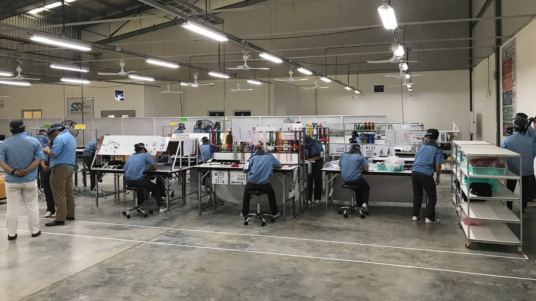 電子部品を加工している。従業員は、タイ工場から転籍したタイ人マネージャーと、採用後すぐにタイ工場で2ヶ月間教育されたリーダークラスのスタッフ数名を教育係とし、OJTで技術を身に付けている。片手に持ったコネクターに種類の異なる10本程度のワイヤーを取り付ける作業や、ワイヤーをひねって束ねる作業は単純に見えるが、実はかなり高度な技術を必要とする。組み立てた製品は品質検査を受ける。納品先はタイの日系メーカーだ。品質に対する要求は非常に高い。最初から品質検査をパスする製品を作れるケースは少なく、従業員は皆、日々努力を重ねているようだ。