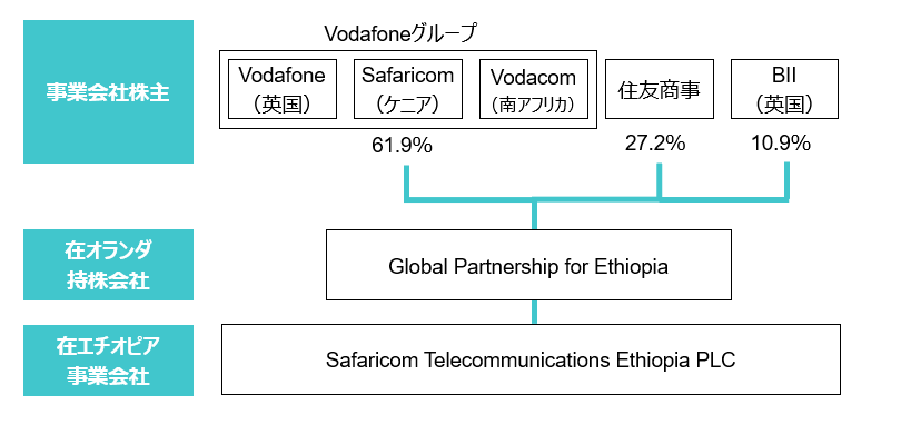 Safaricom Ethiopiaは、住友商事、英国のVodafone Group Plc(以下「Vodafone」)、Vodafone傘下の通信事業者であるケニアのSafaricom Plc、南アフリカのVodacom Group Ltd、英国の投資ファンドであるBritish International Investmentによる合弁会社であり、本事業は住友商事とVodafoneが2020年に締結した戦略的パートナーシップの下で実現する初めての共同投資案件です。