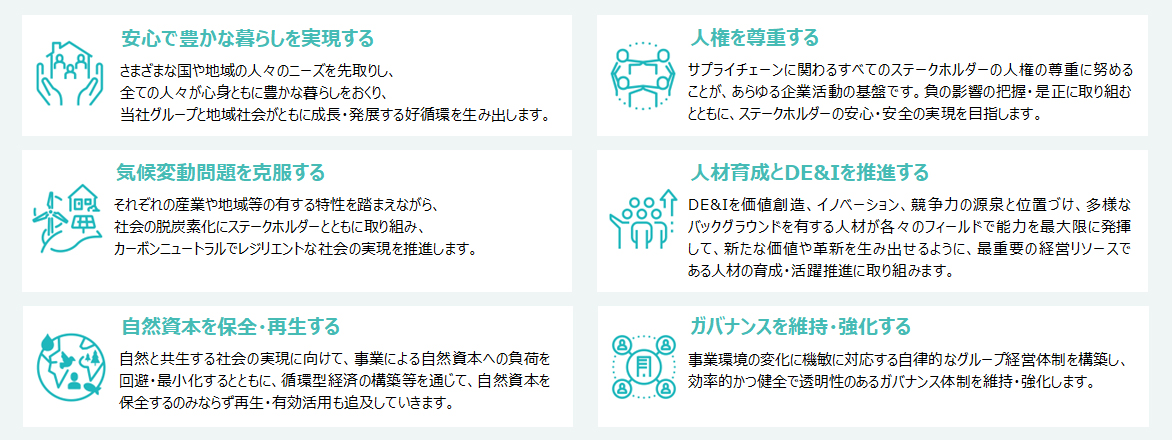 今後もマテリアリティおよび長期・中期目標の達成に向け、さまざまなステークホルダーの皆さまのご意見をいただきながら、より一層取り組んでいきます。