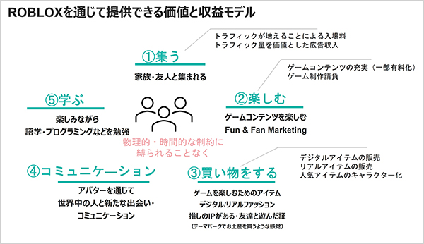 また、企業はROBLOXのようなメタバースを活用し、自社ならではの魅力的な体験を提供することで、自社製品やブランドの認知拡大やエンゲージメント向上が可能となるため、プロモーションやマーケティング、ブランディングでのメタバースの活用に大きな期待が集まっています。