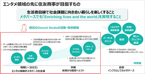 まずは住友商事としてROBLOXで求められているようなエンターテインメント体験を提供することで、消費者を惹きつけ楽しんでもらうことが出来るとともに、そういった体験を通じて集まったグローバルの消費者に向けて、住友商事が日本企業へのメタバースコンテンツのプロデュース(受託制作)と人気コンテンツ上への広告掲出を行うことで、価値提供が出来ると考えています。実際にライセンスビジネス向けマッチングサービス時から協業している「あさみみちゃん」には、メタバースコンテンツを通じたグローバルへの発信という観点で共感いただき、「あさみみちゃん」を題材としたコンテンツ制作・リリースを予定しています。
