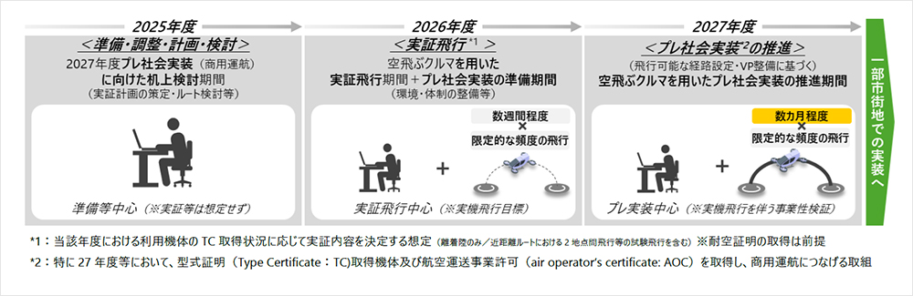 ※ 引用元:「東京都「空飛ぶクルマ実装プロジェクト」Ⅰ期 今後の想定スケジュール」