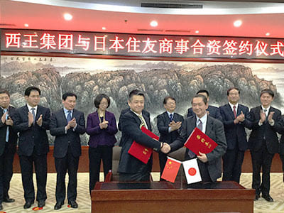 住友商事株式会社(总公司:东京都中央区,取缔役社长:中村邦晴。以下简「住友商事」)此次取得了在中国从事饲料谷物(大麦,高粱等)进口・销售事业的西王国际贸易有限公(总公司:山东省,法人代表:王 棣,以下简称[西王国贸社])百分之40的股权,并签署了协议。