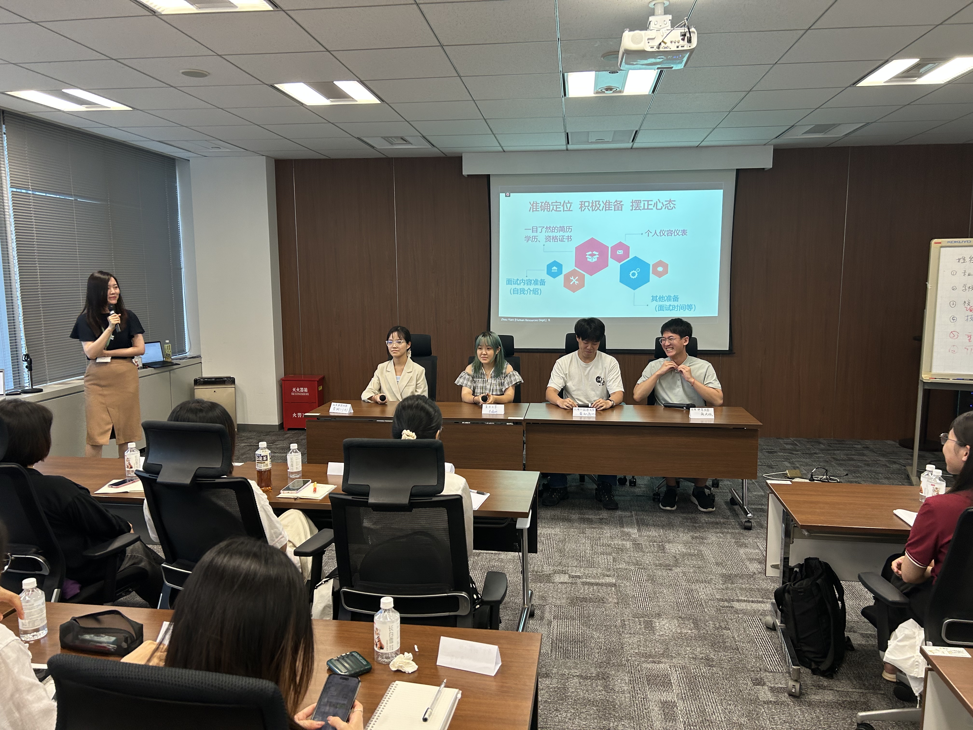在课程设计上,除了讲师授课外,还安排有讲师与学生的互动环节。例如在人事课程中设有模拟面试的环节。学生通过与面试官面对面的接触,更好了解日企对于人才的定义以及要求,同时自身也积累了一定的面试经验,为学生在今后的职业规划上提供了有价值的参考。除了课程多元化的安排之外,还安排事业公司以及邀请住友商事交换留学生奖学金项目获奖者就在日留学的收获与同学们做交流。通过让学生与企业“亲密”接触,增强现场感的同时也让同学进一步思考如何将知识结合实践。在参观过程中公司精心安排的教学都给学生们留下了深刻印象,通过实地参观,学生们见识了先进企业的管理模式和营销理念。